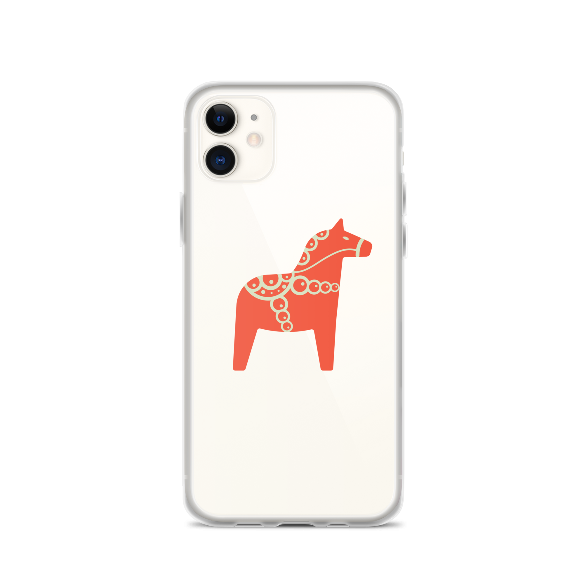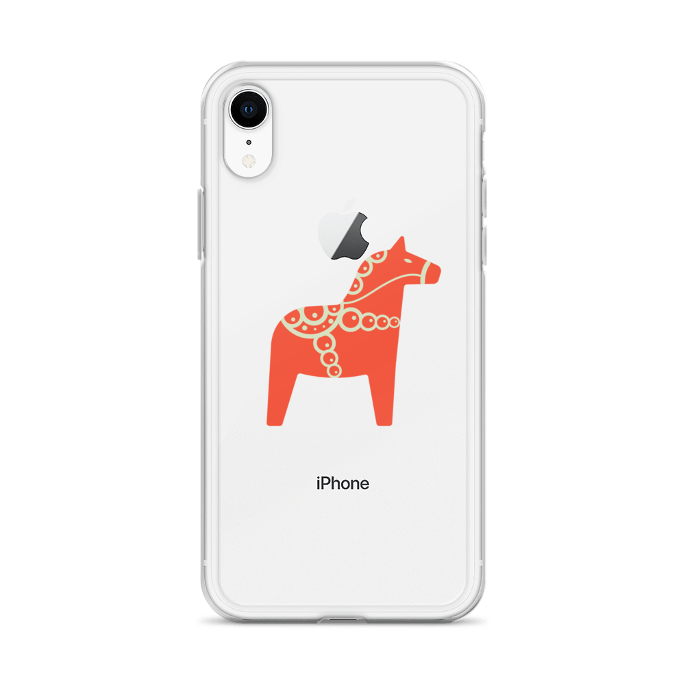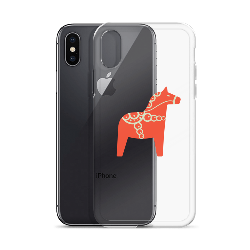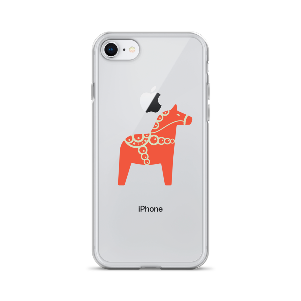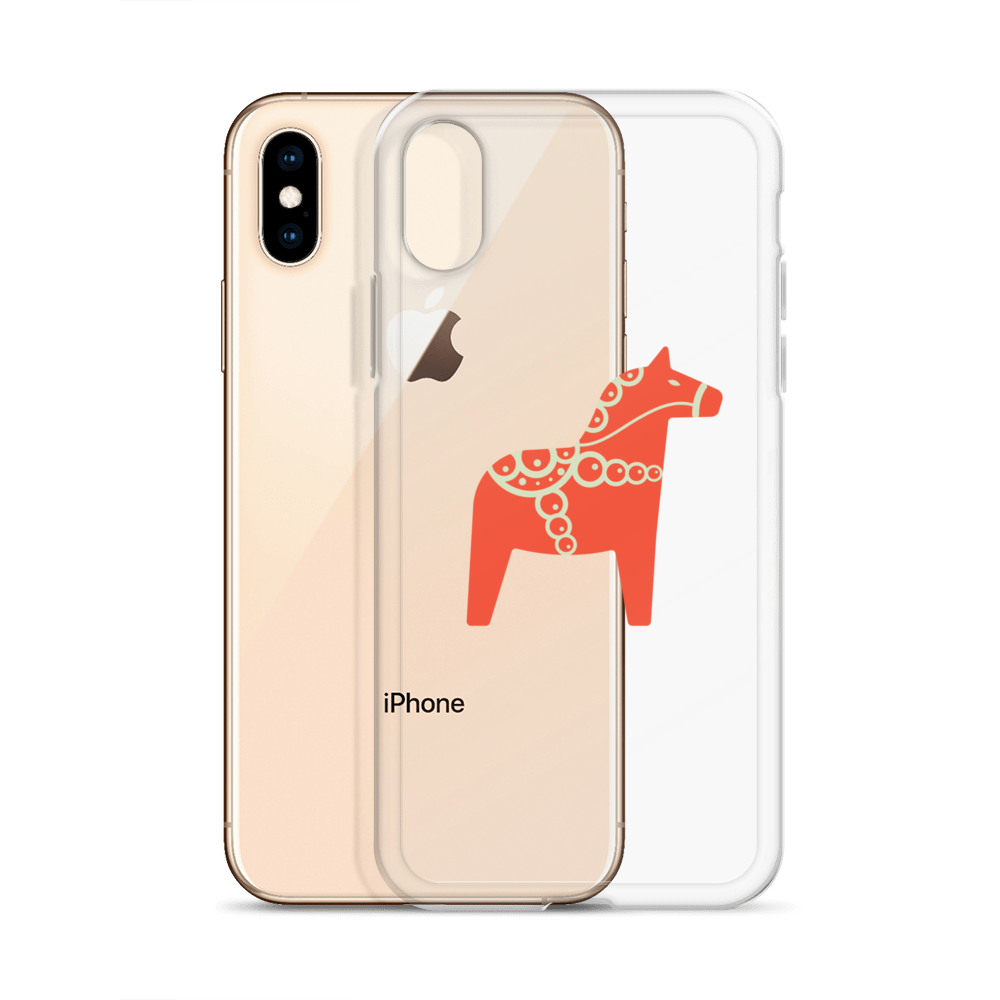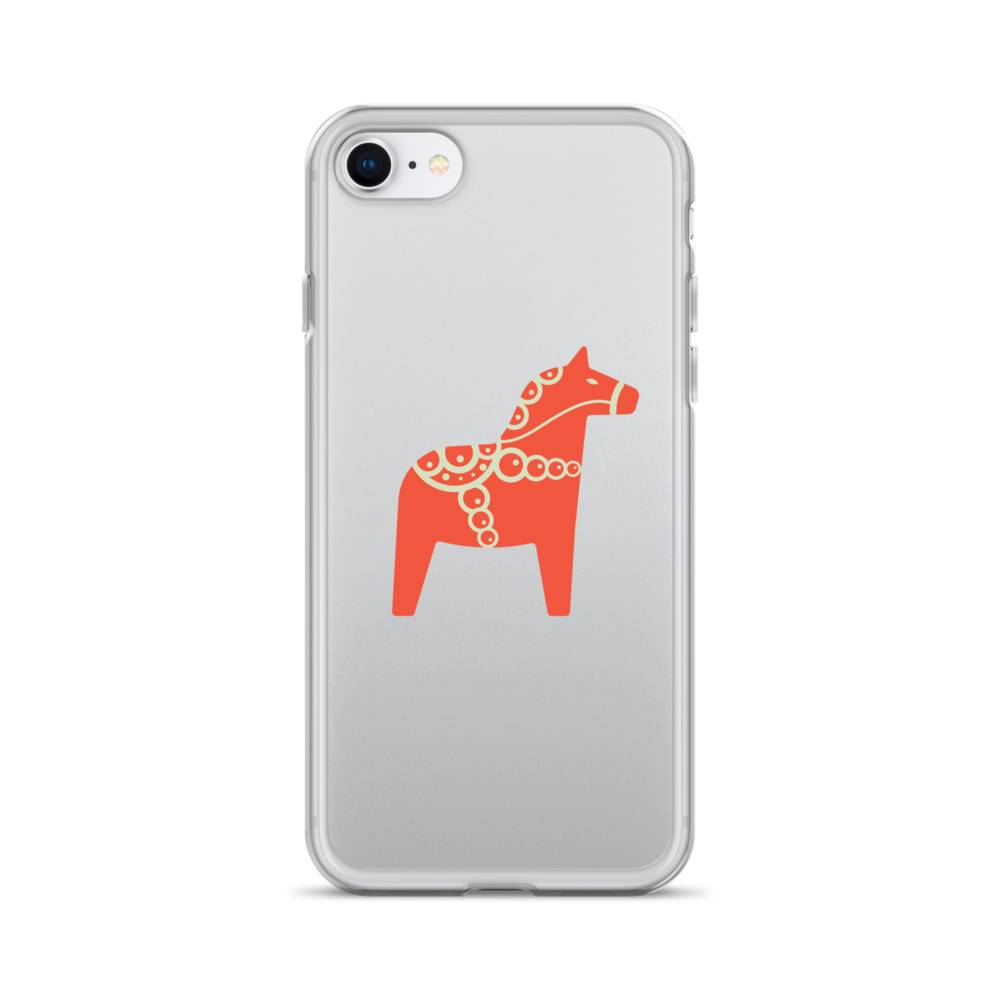 Clear iPhone case featuring the Dala horse, a symbol of good luck, simple and easy to carry with you every day.