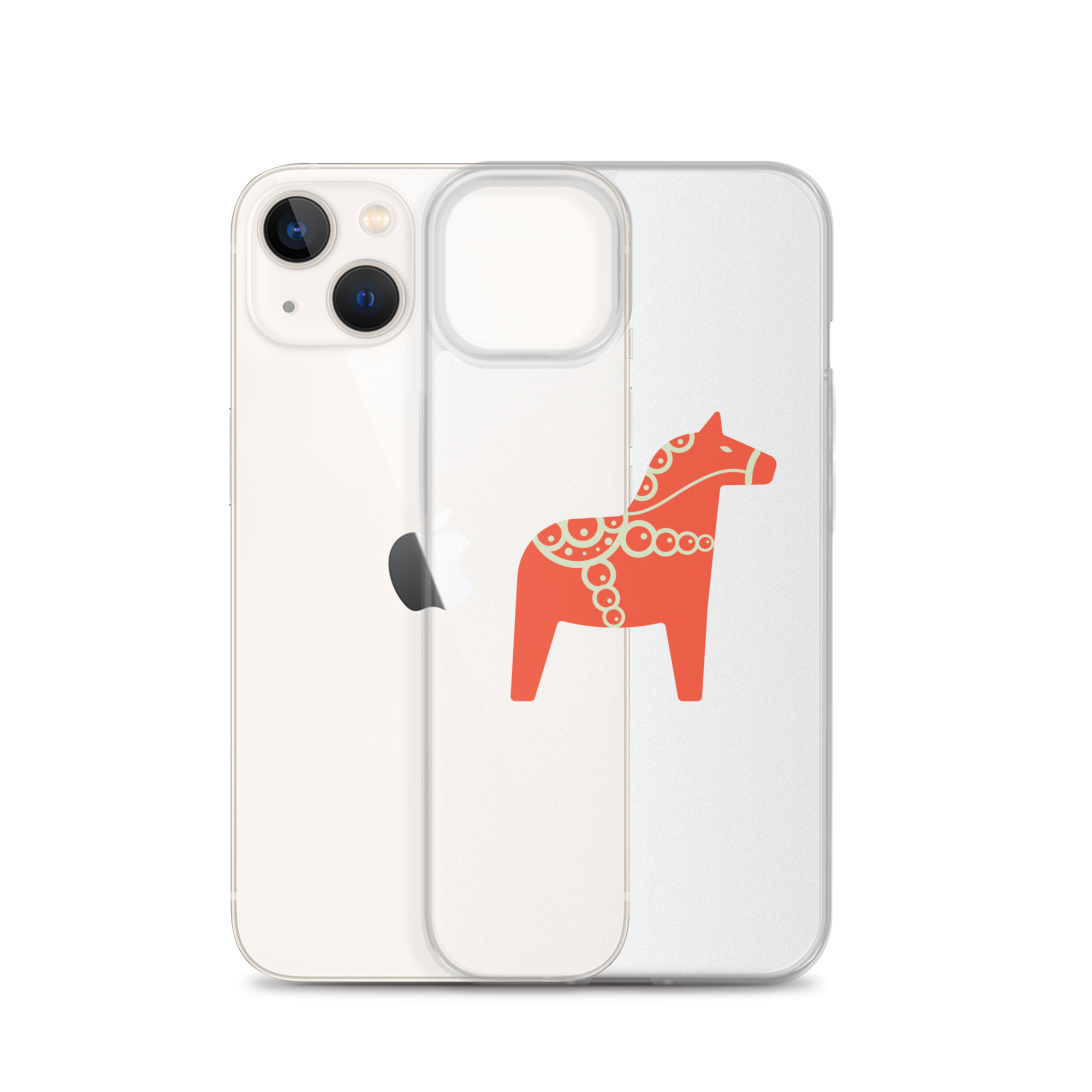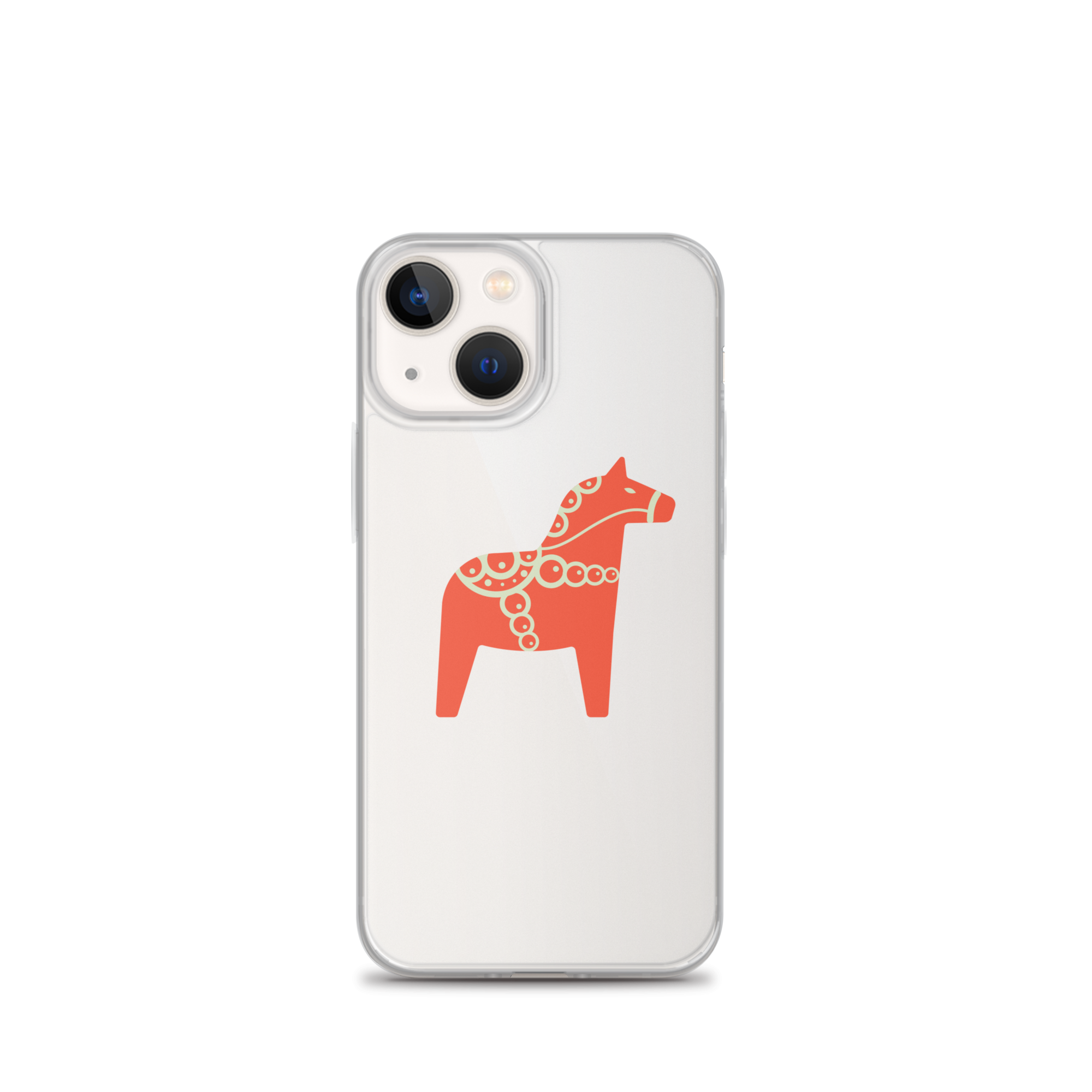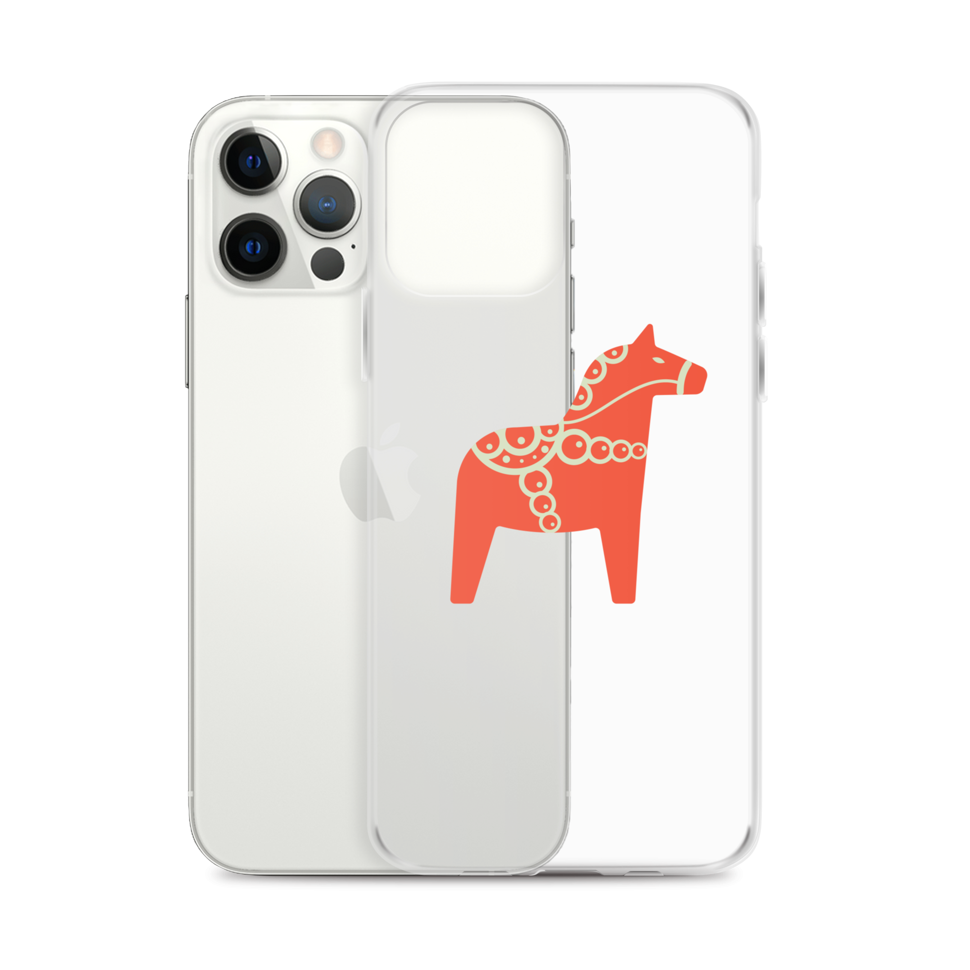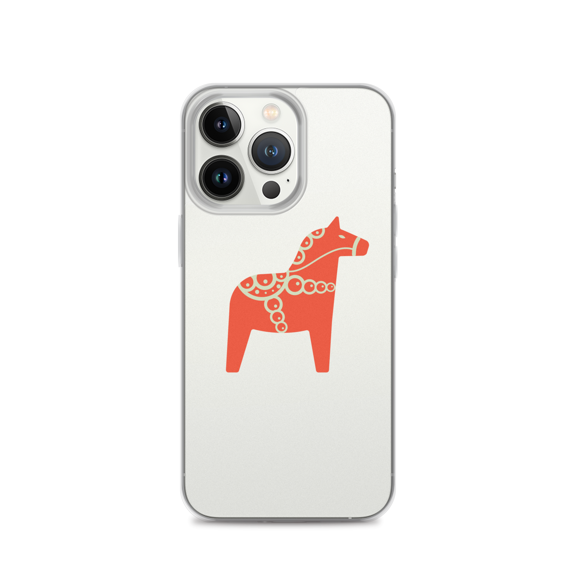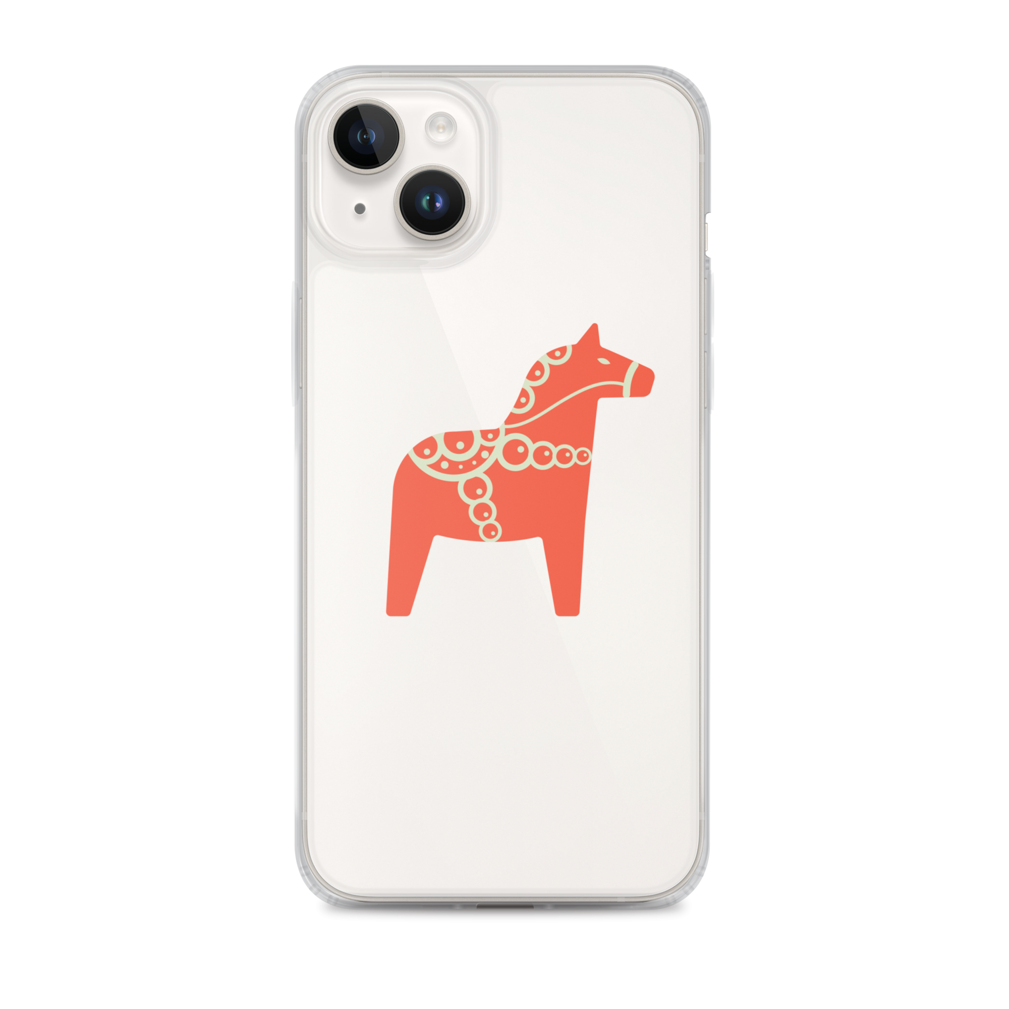 Clear iPhone case featuring the Dala horse, a symbol of good luck, simple and easy to carry with you every day.
