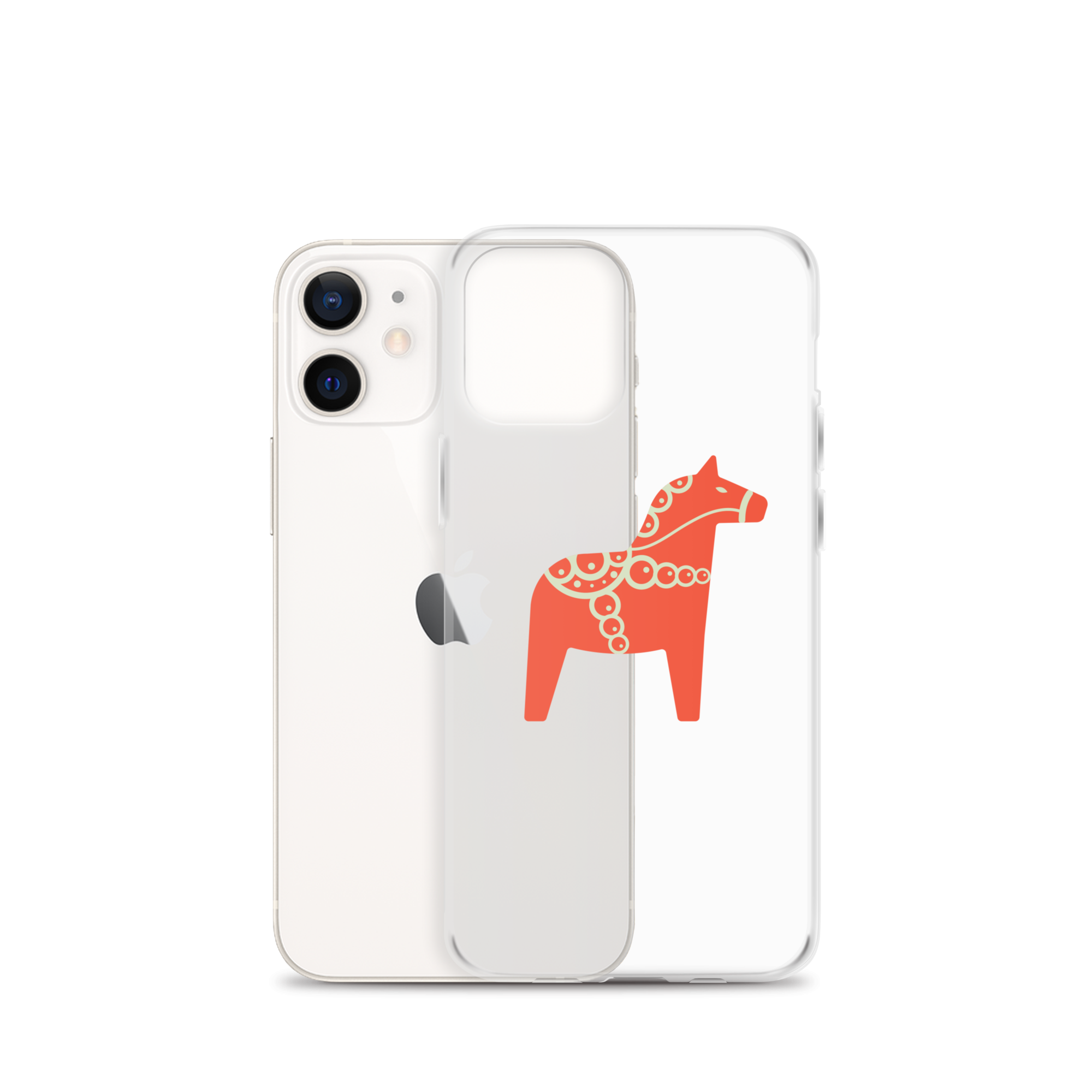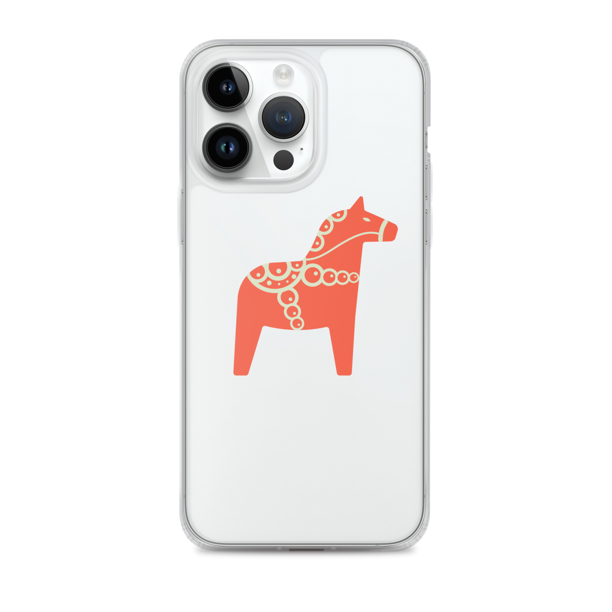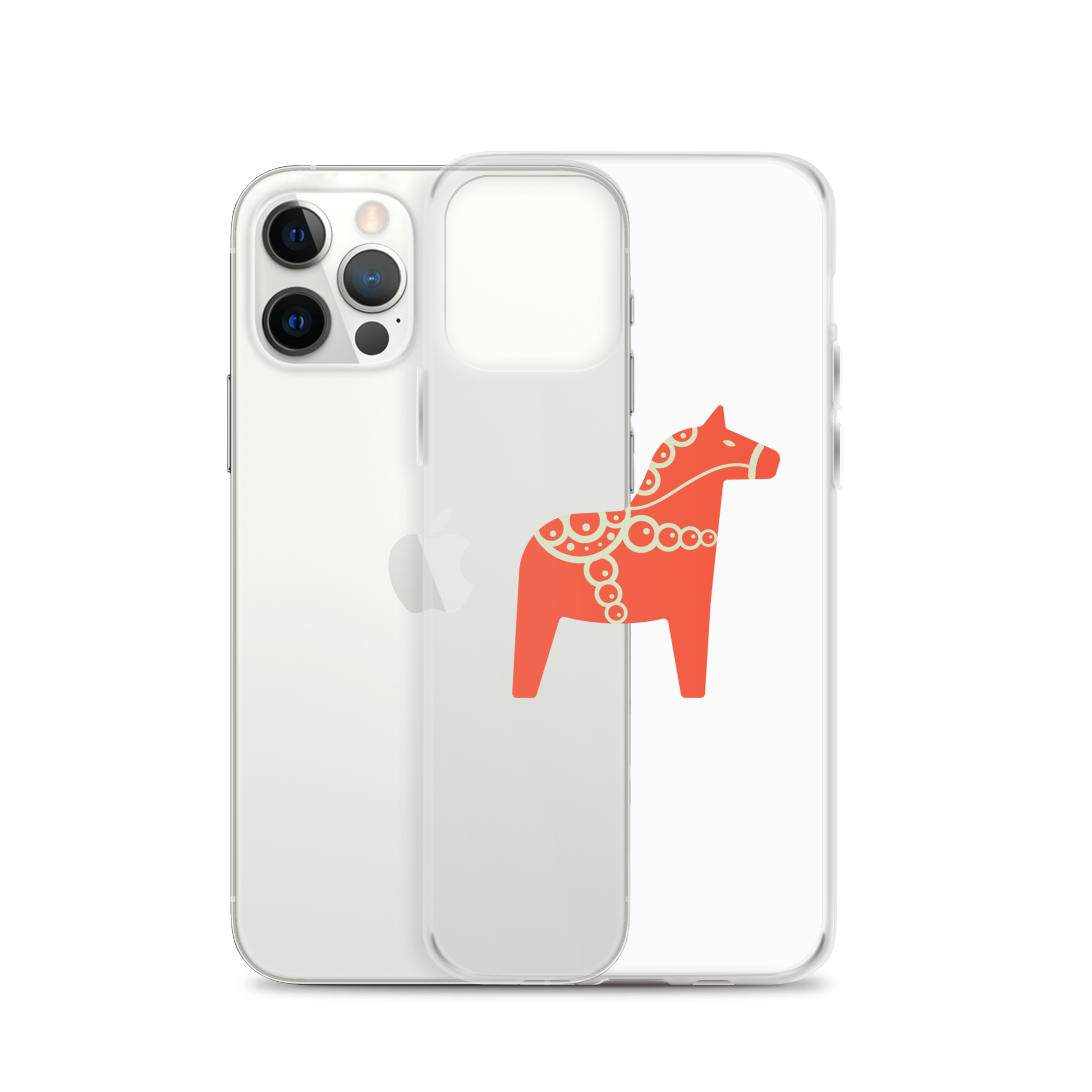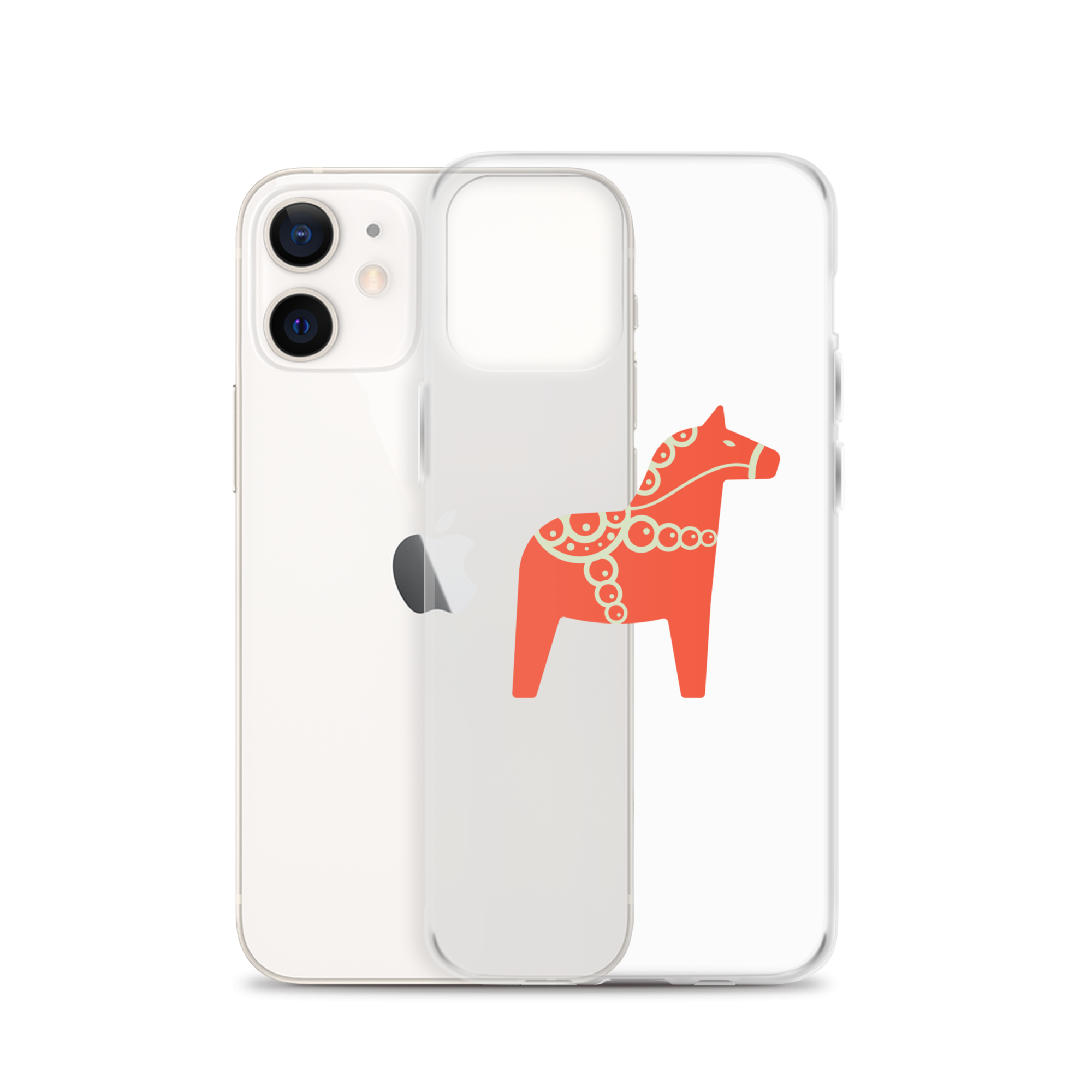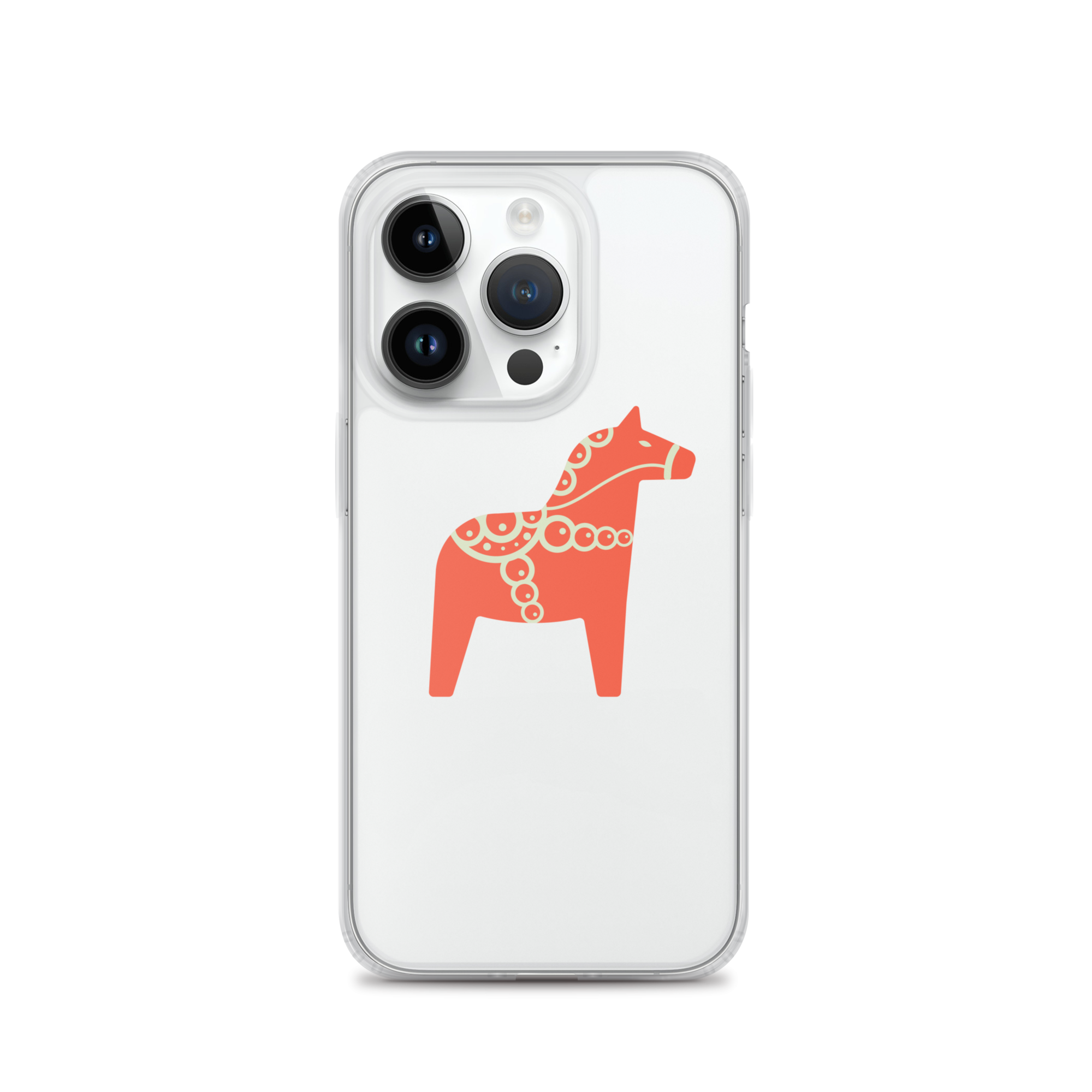 Clear iPhone case featuring the Dala horse, a symbol of good luck, simple and easy to carry with you every day.