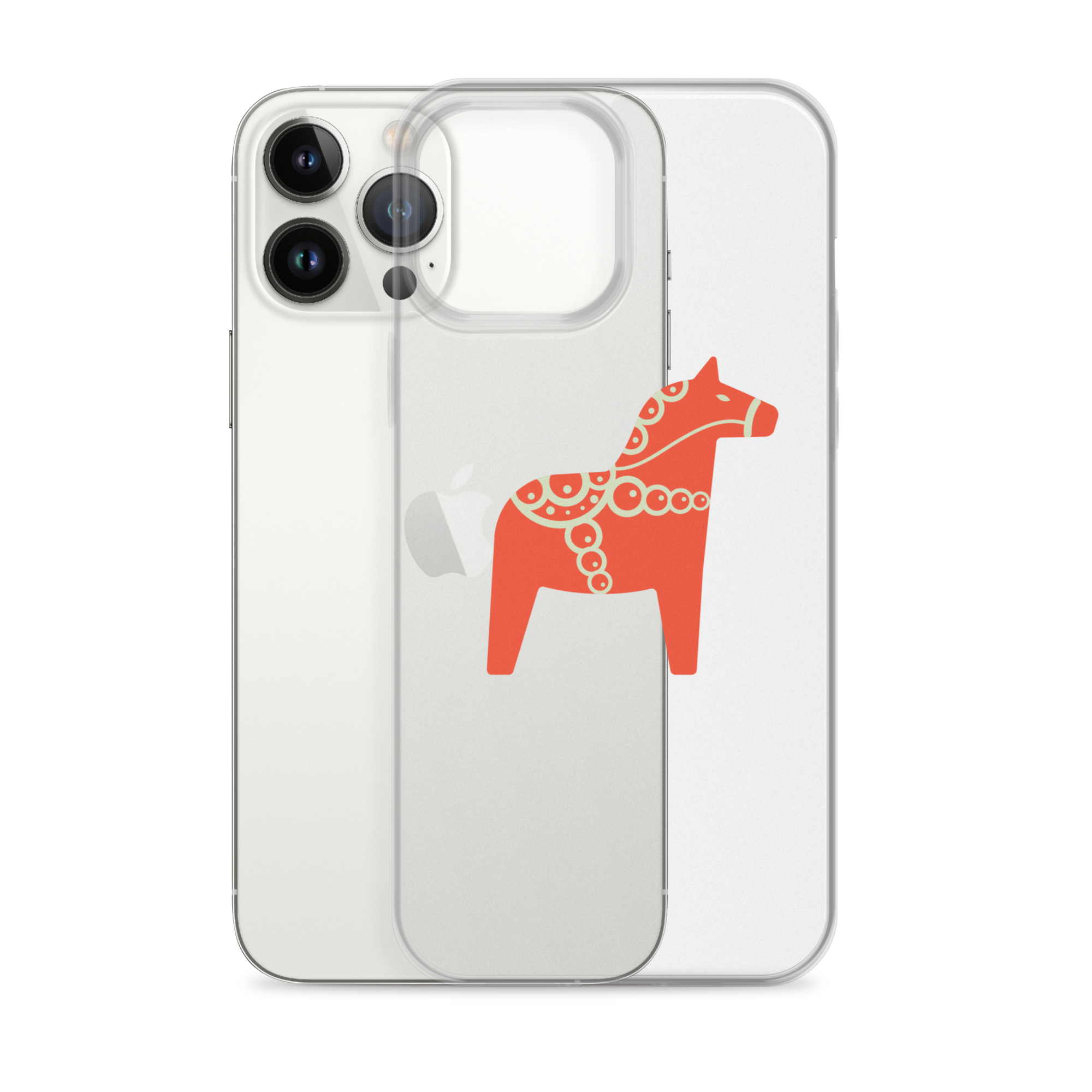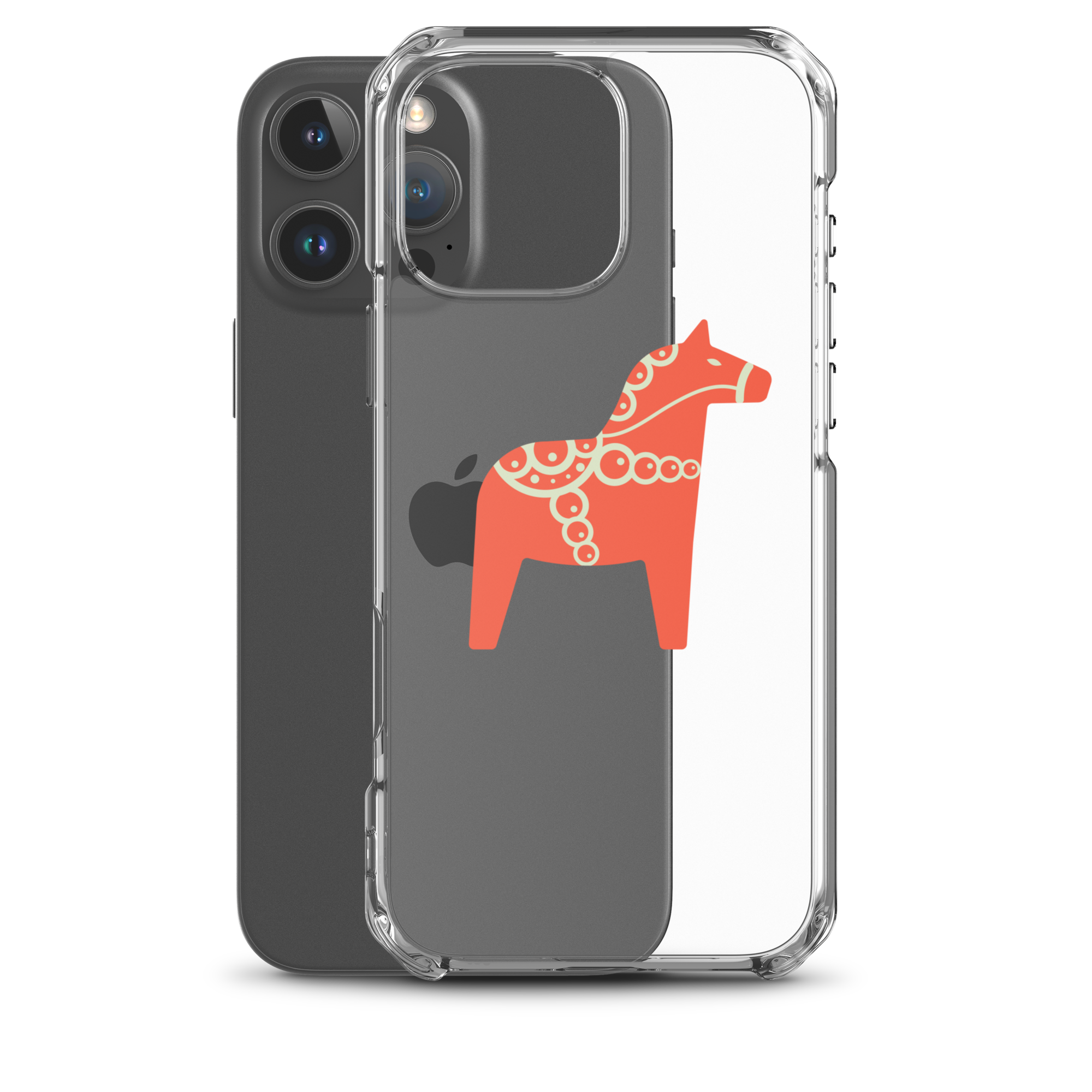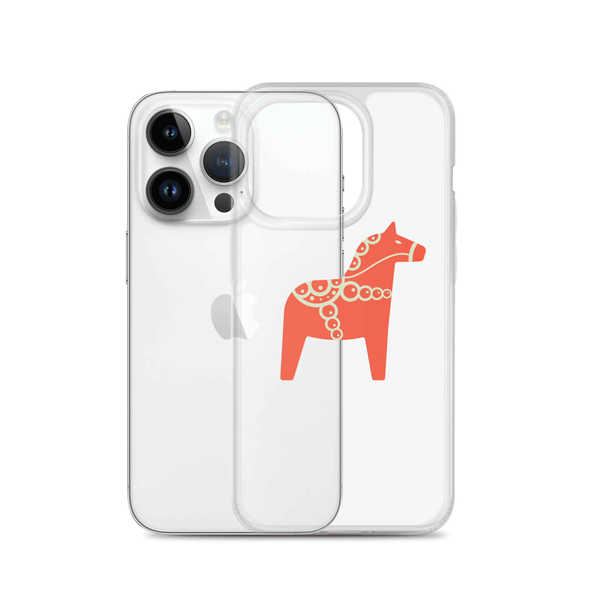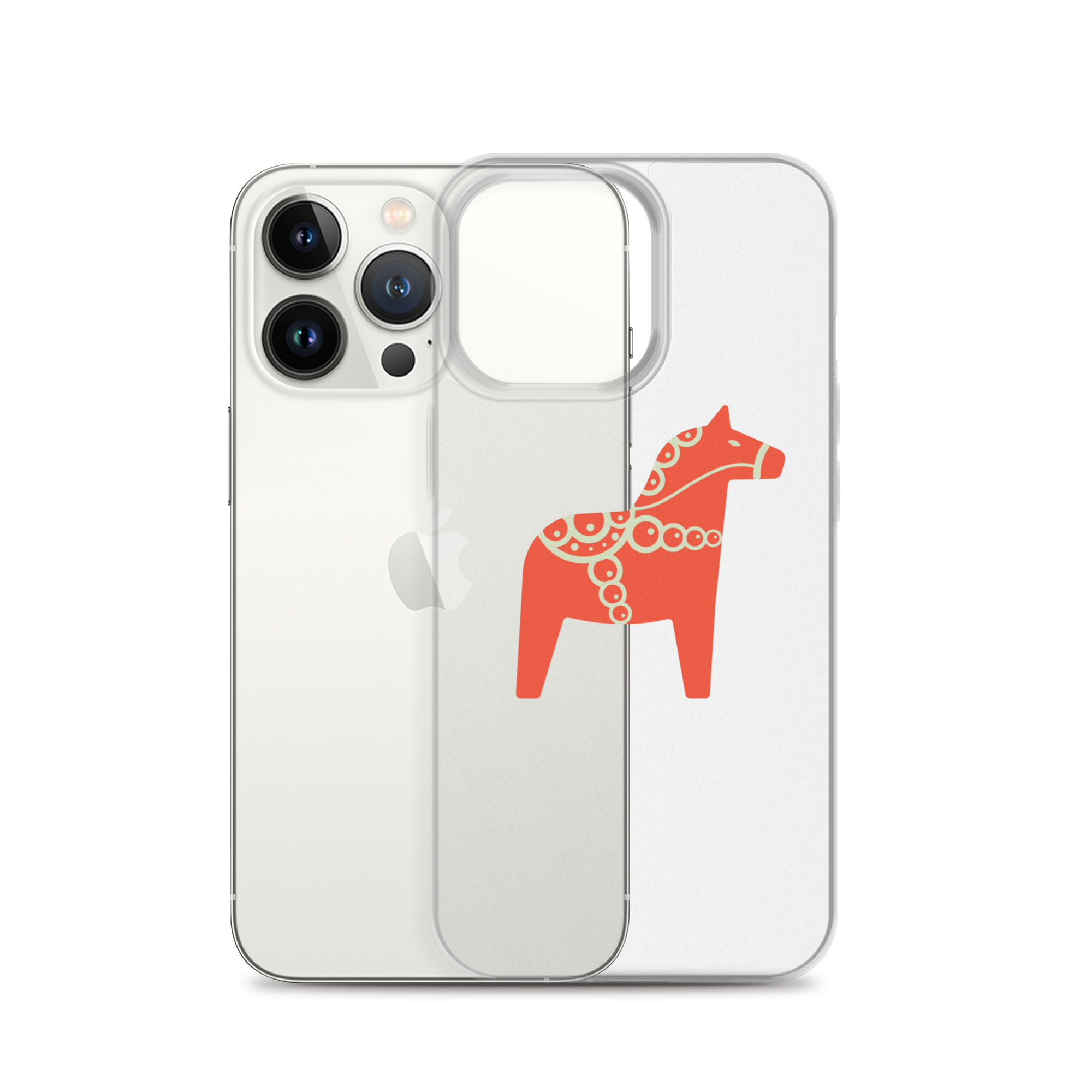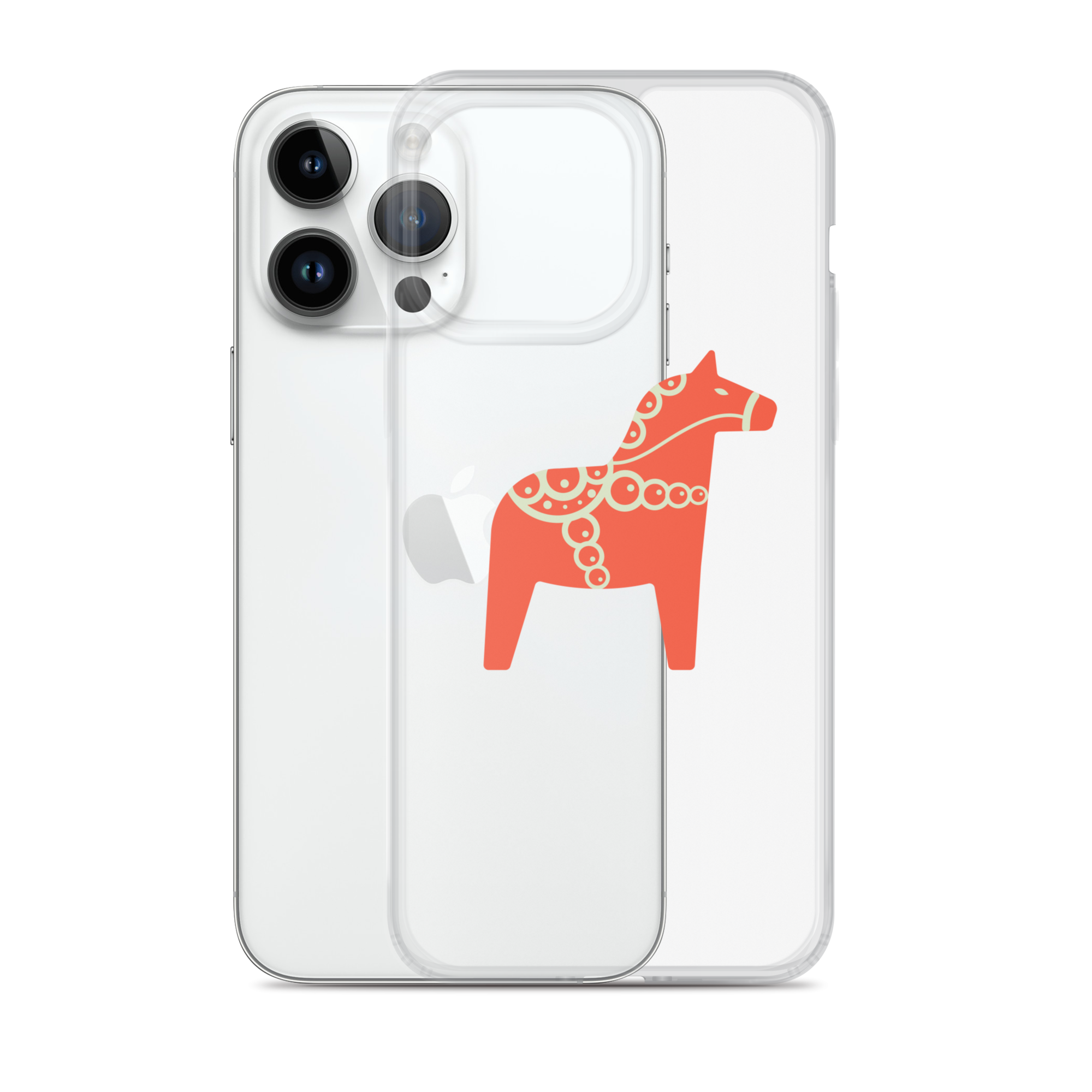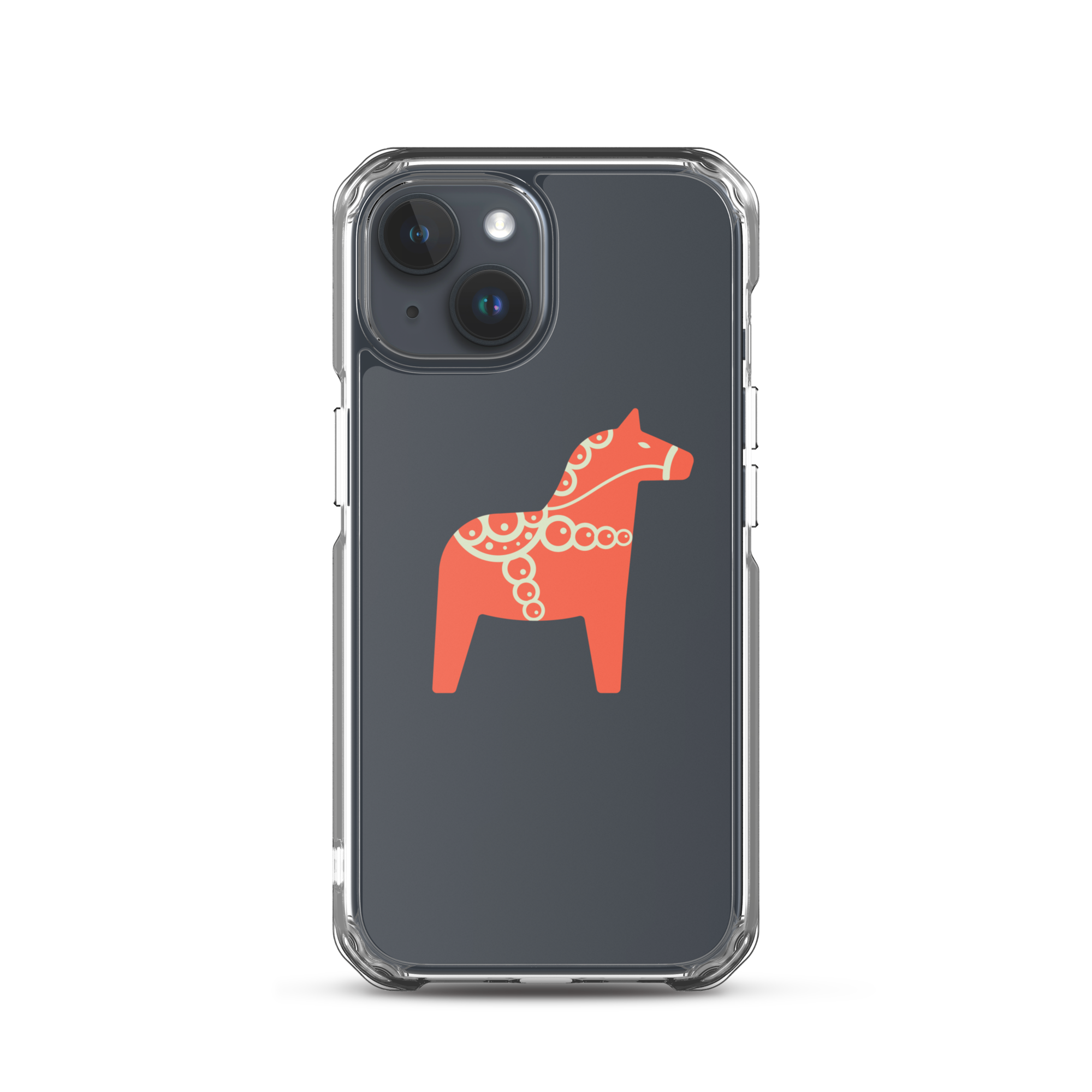 Clear iPhone case featuring the Dala horse, a symbol of good luck, simple and easy to carry with you every day.