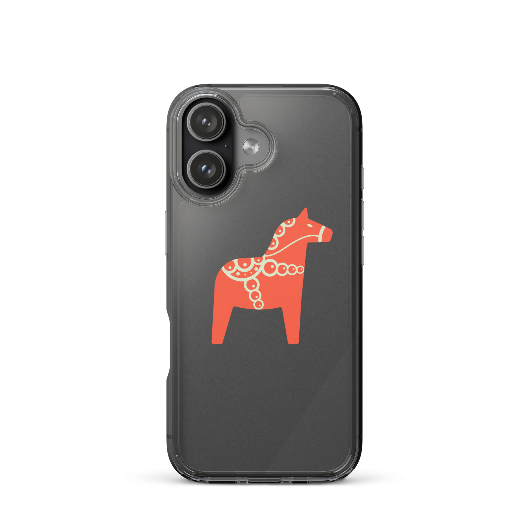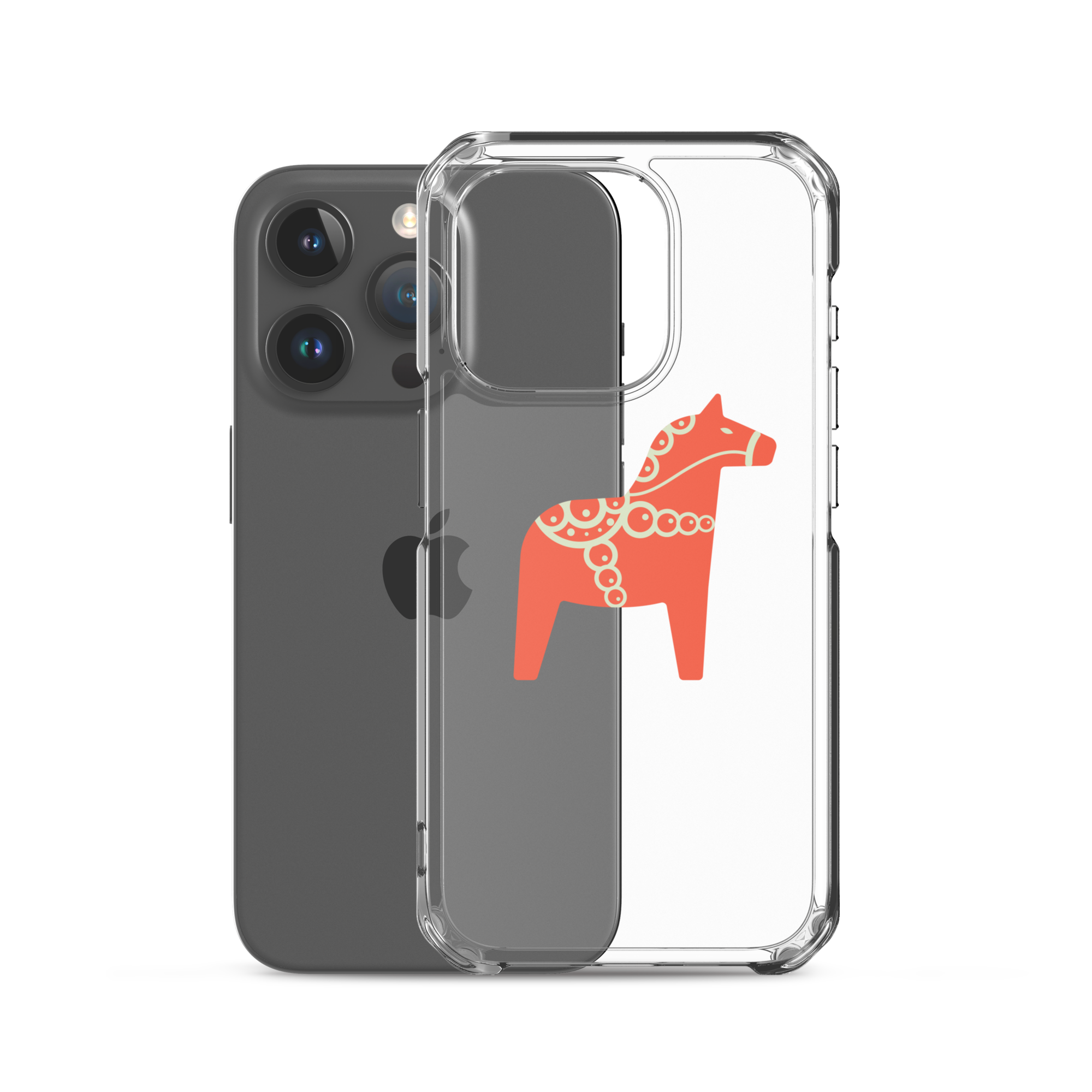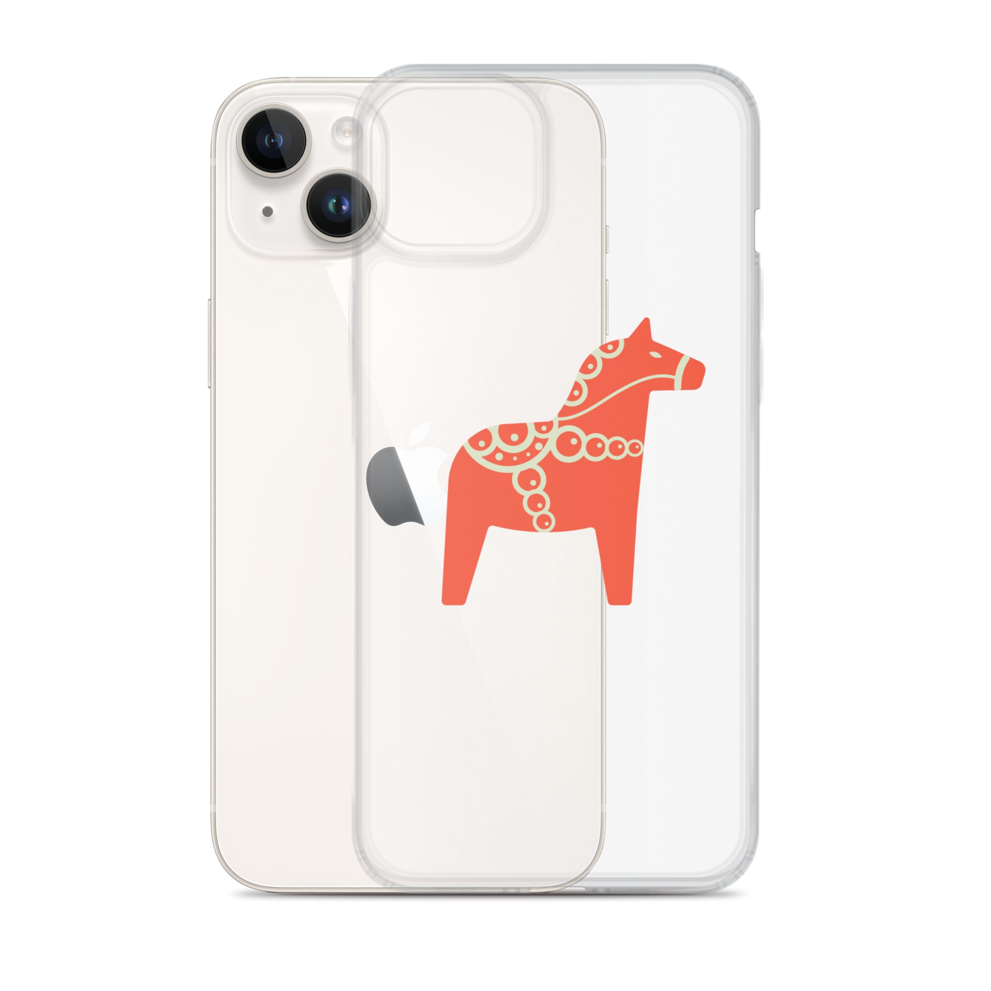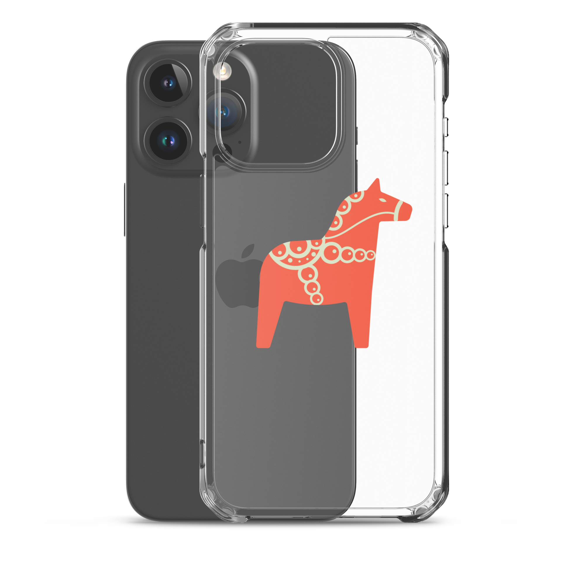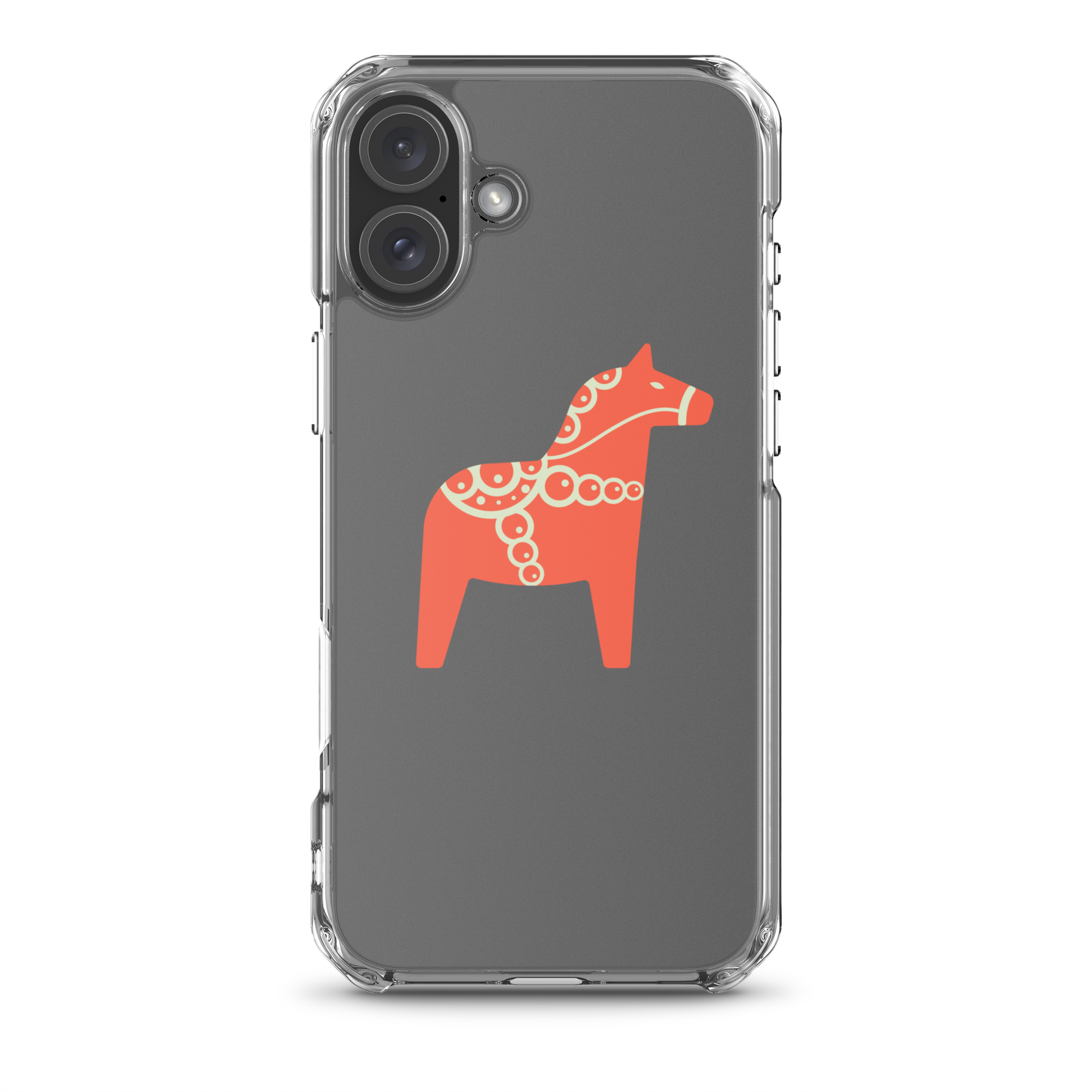 Clear iPhone case featuring the Dala horse, a symbol of good luck, simple and easy to carry with you every day.
