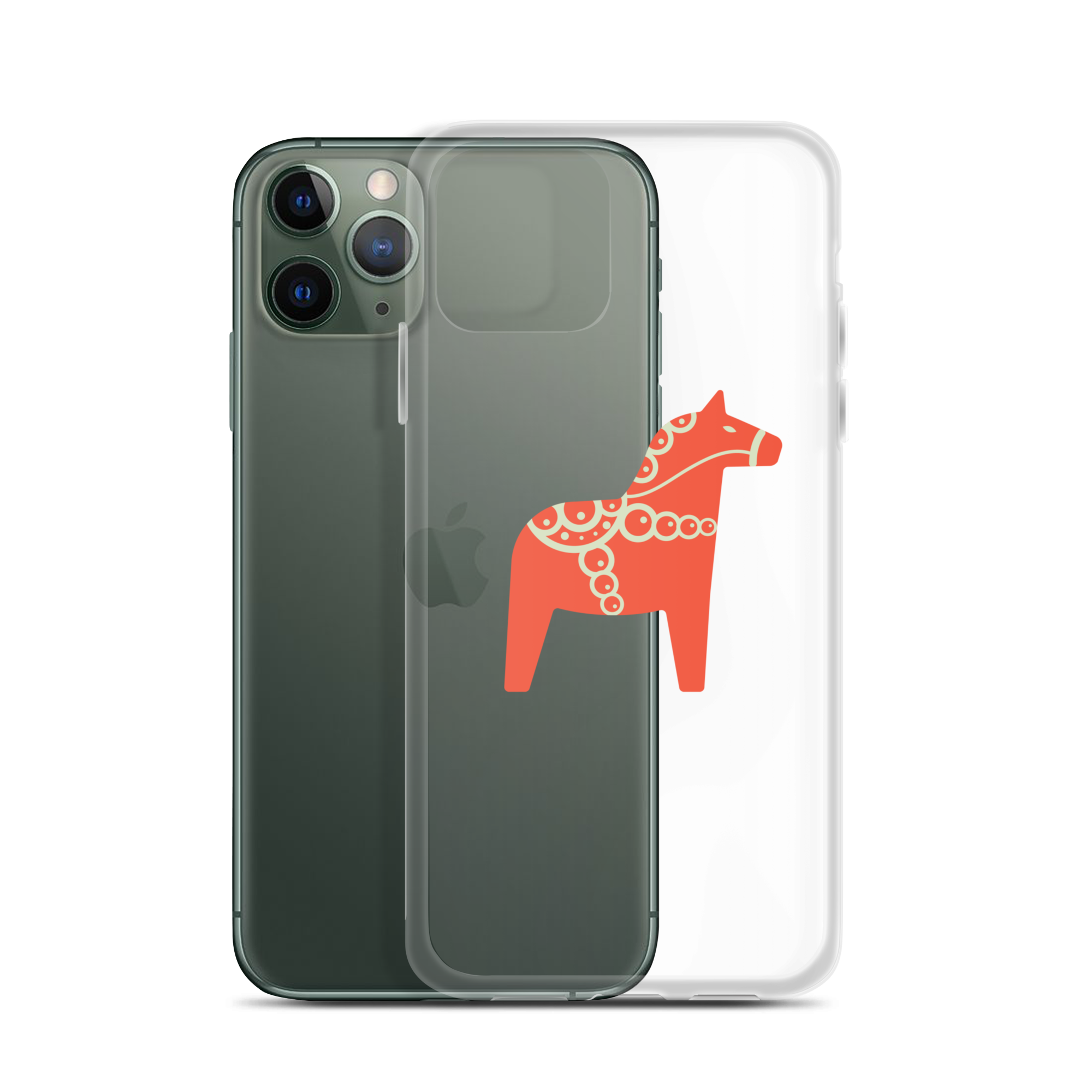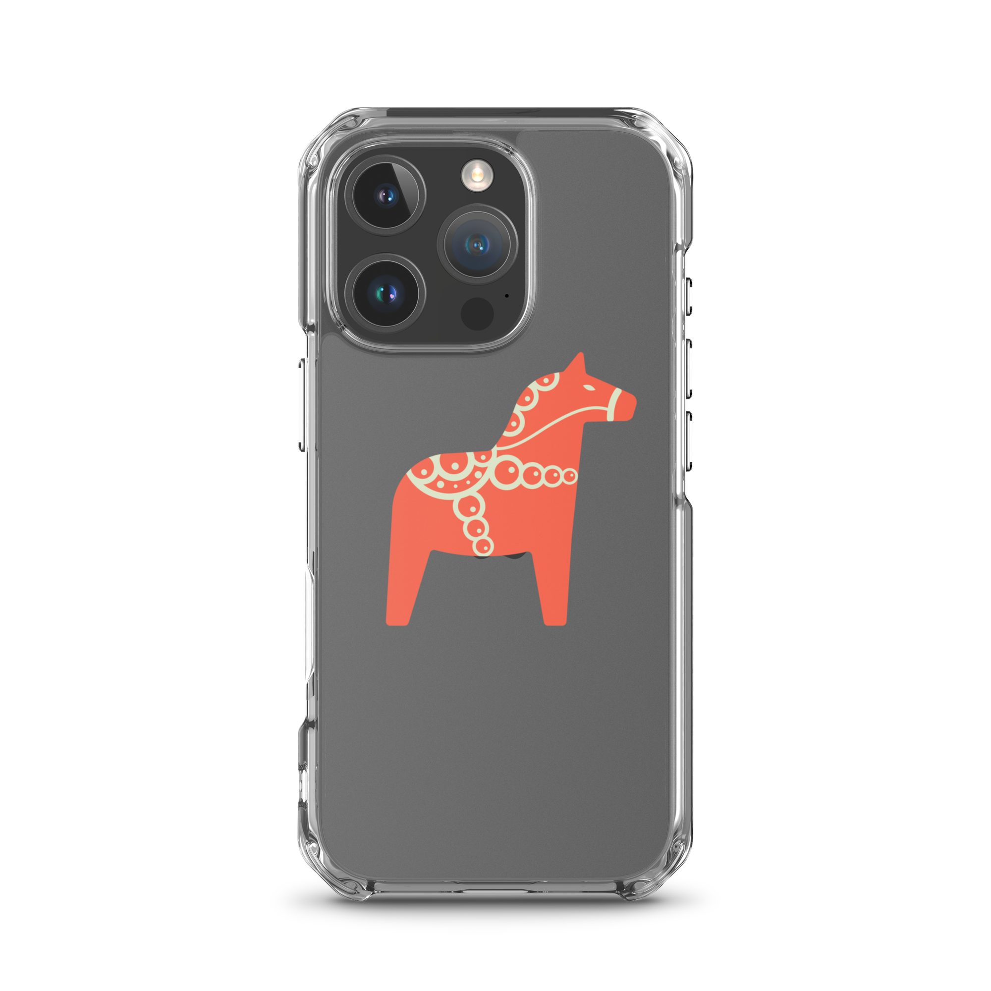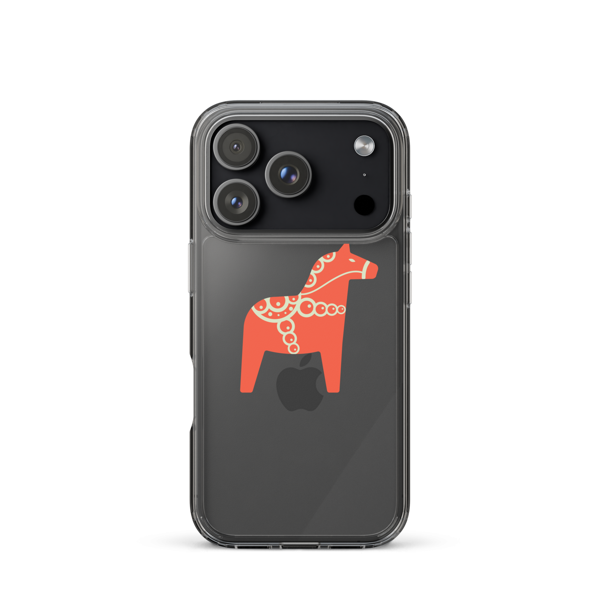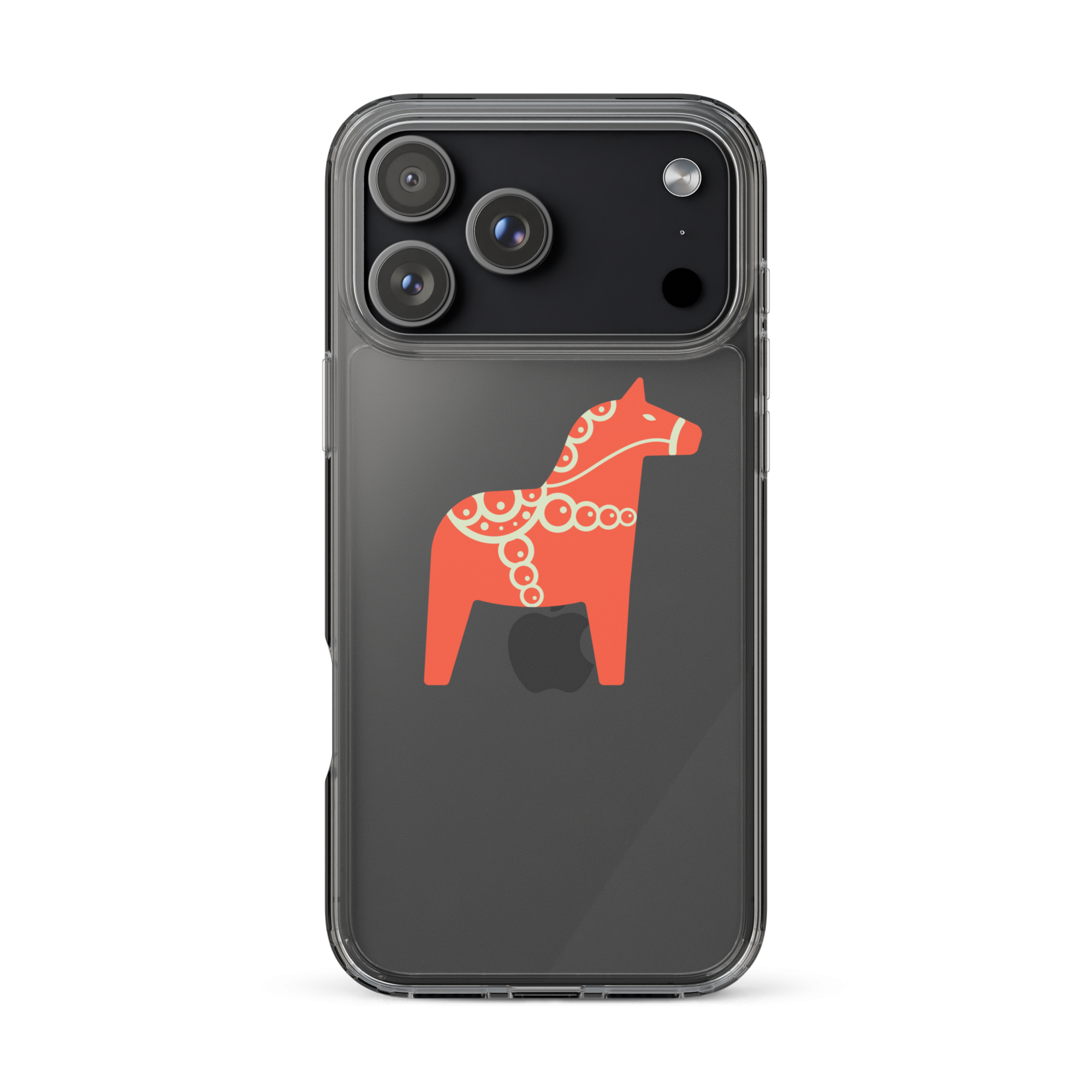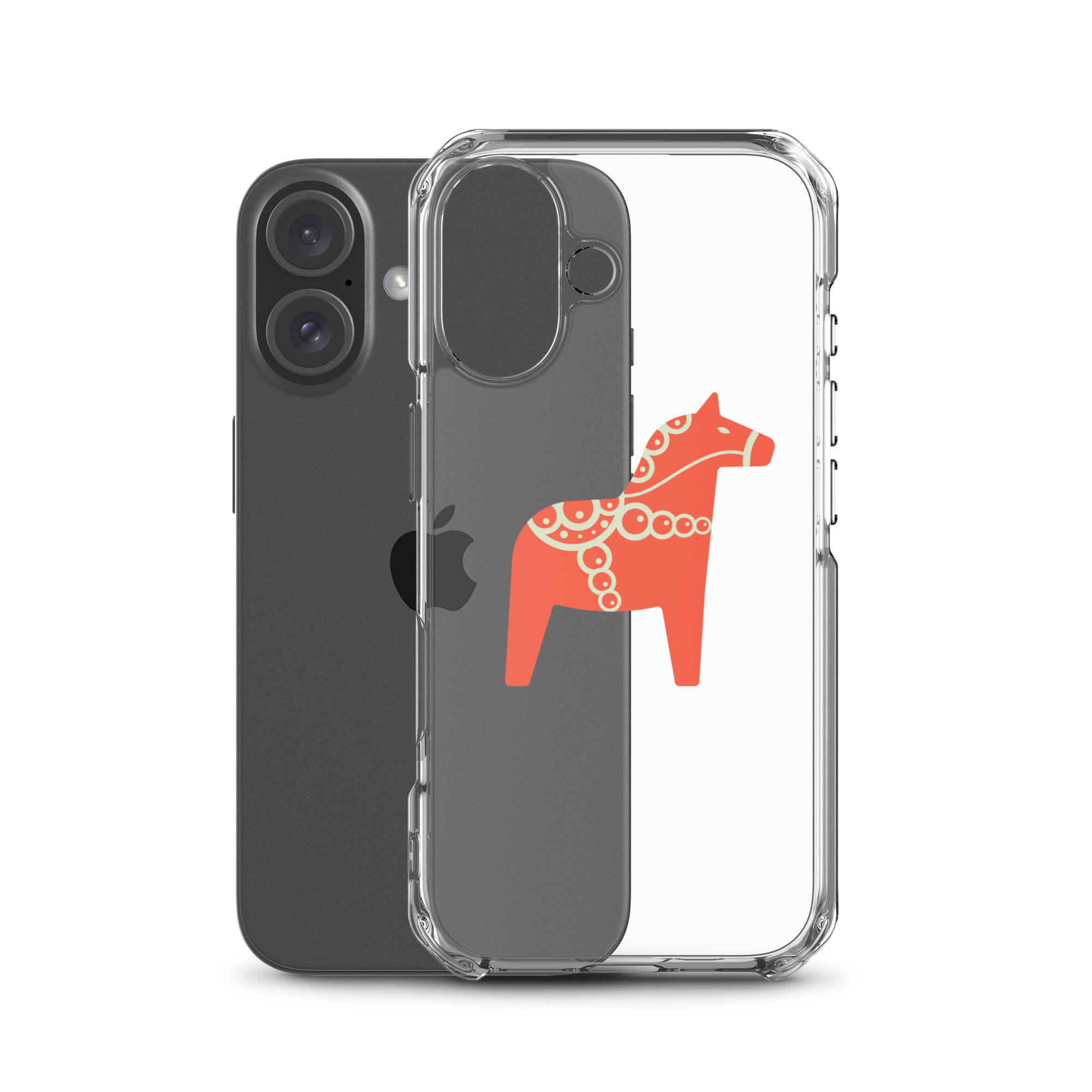 Clear iPhone case featuring the Dala horse, a symbol of good luck, simple and easy to carry with you every day.